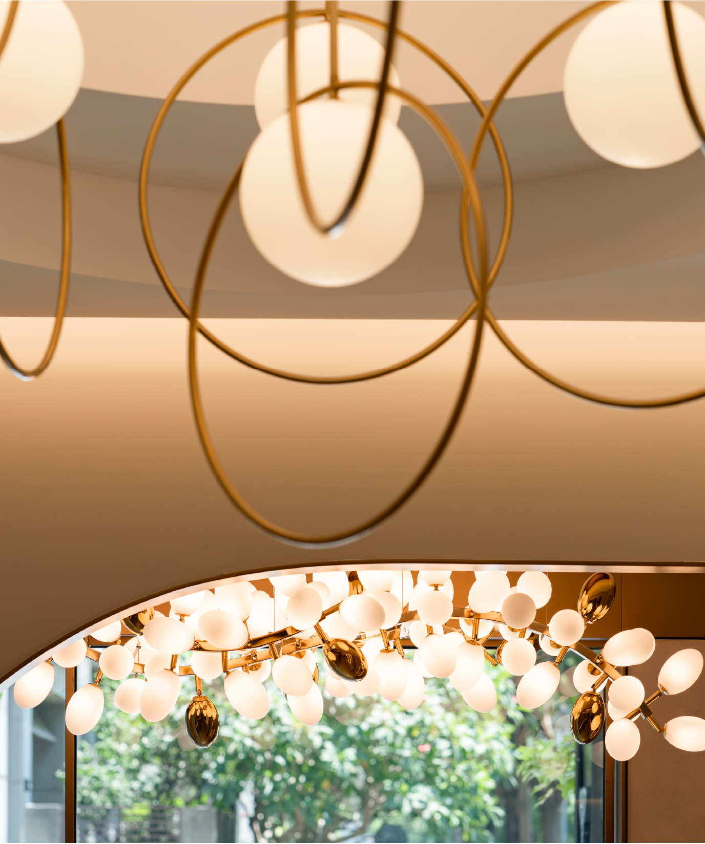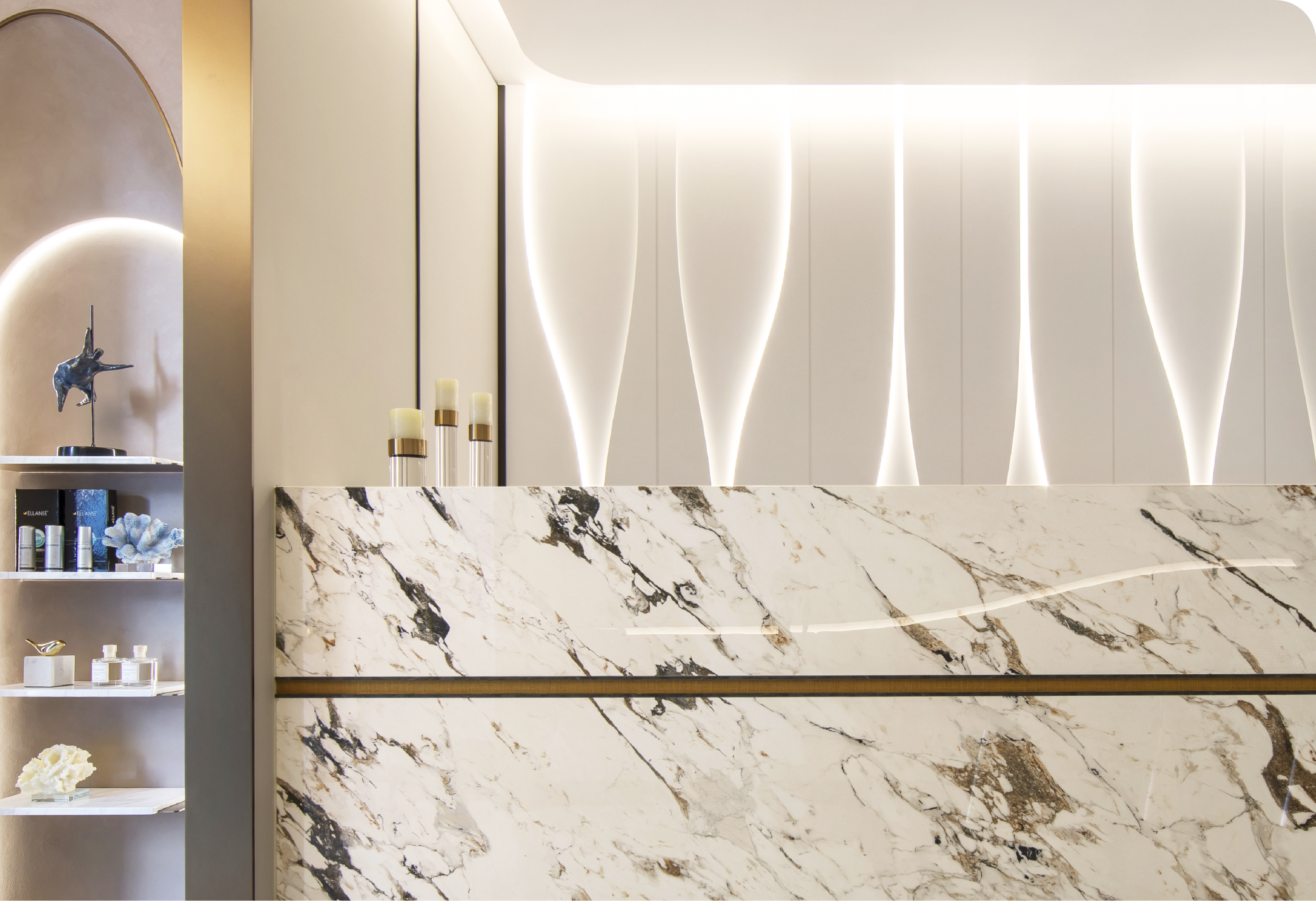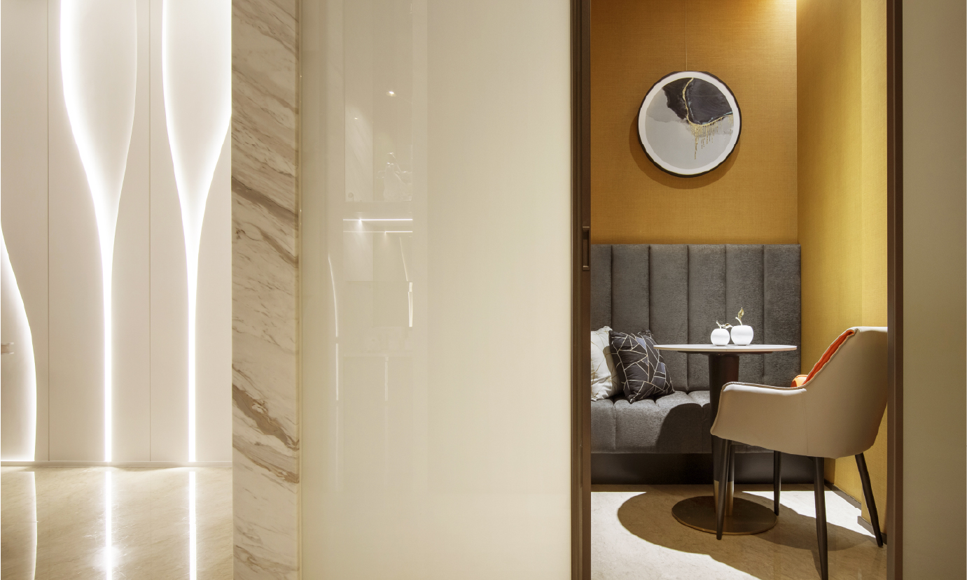 Reception花千樹櫃檯柔美燈光與窈窕曲線雕塑的光樹,讓您感受到最溫暖誠摯的歡迎問候 -